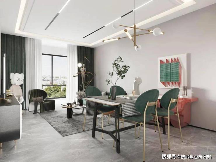 独立的入户玄关,出入皆有生活的仪式感,更方便做细致的收纳分区;客厅、餐厅相互独立,客厅南连宽景阳台,餐厅北连飘窗,让空间得以延展的同时,也让阳台的功能多样化;厨房就近连接餐厅,动线清晰,客餐厅通透明亮.