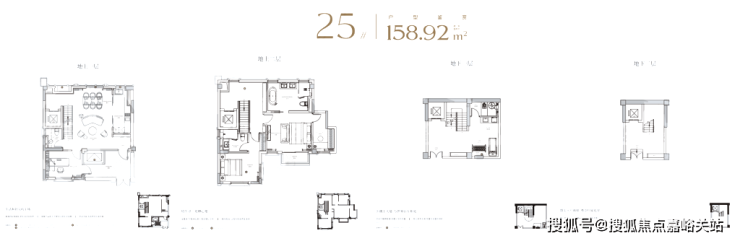 * **空间尺度**:户型设计强调“大开大合”。普遍拥有**约3.6米的室内层高**、**最高达8.5米的面宽**以及**270度转角无界宽厅**,旨在最大化引入光线与景观。**极高的得房率(宣传可达150%)** 源于对地下室(部分层高可达6米)、阁楼、花园、露台的大面积赠送。