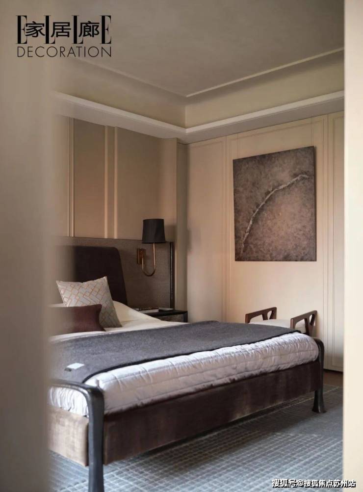 因此,设计摒弃花哨的视觉语言,回归到“感受”本身。“作为最接贴近自己的空间,卧室里你最在意的是什么?”,这个答案落在了“环保”与“亲肤”上。设计师选择羊毛、棉麻等作为卧室空间的体感材料。而不管是从欧洲特别定制的毛毯到床头软包面料都经历了一系列苛刻的筛选,以达到人们心目中理想的使用体验。