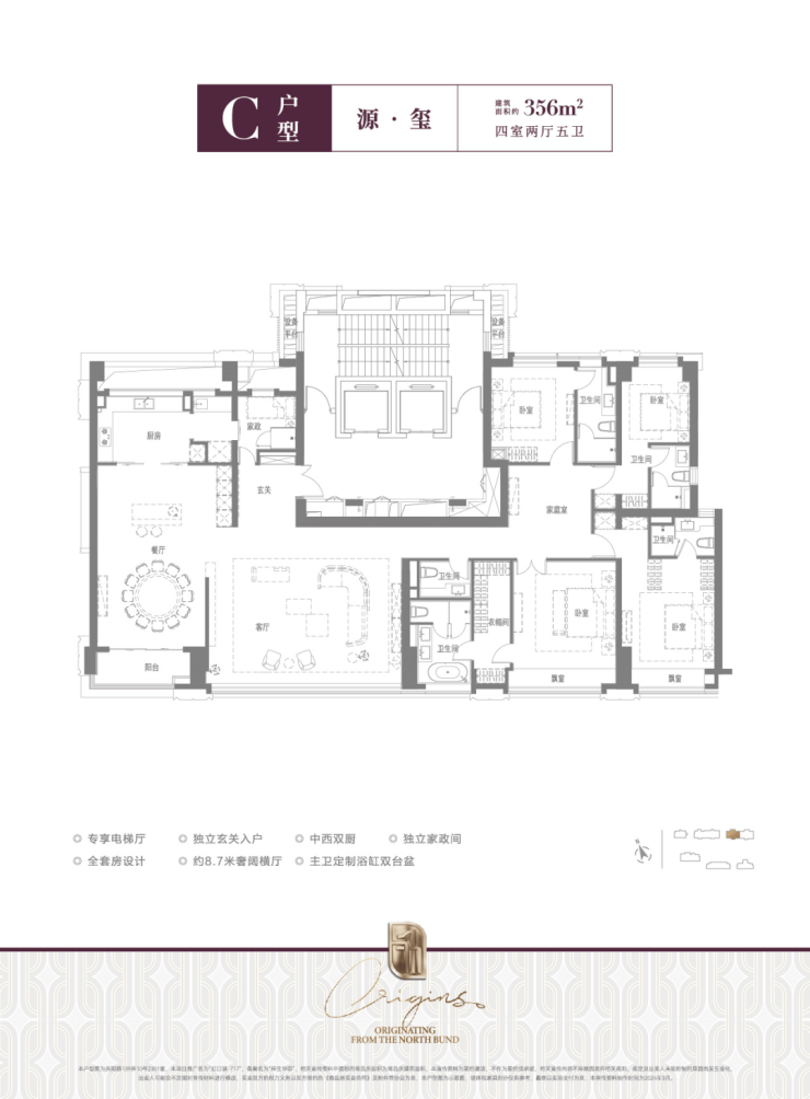 建面约140-356㎡的3-4房户型,准现房年底交付!豪华入户、全明户型、全屋奢装,无不匹配北外滩精英对于国际生活和未来格局的进阶需求.