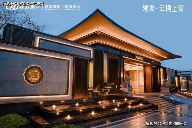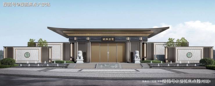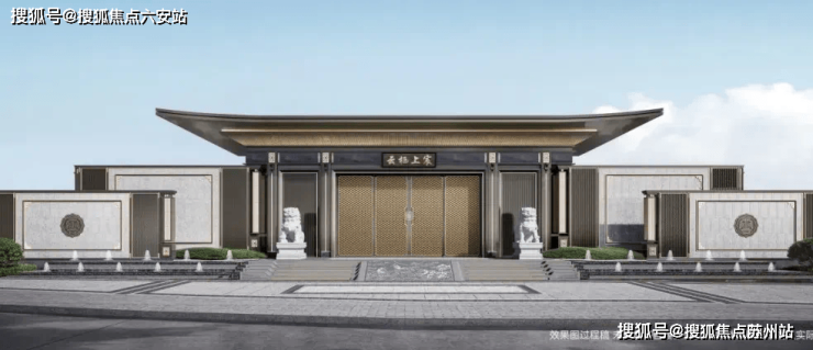 - **新中式建筑典范**:杭州云栖上宸售楼处电话☎:400-8828-814(售楼处预约看房热线)传承建发第四代住宅立面,采用三面大面积铝板+玻璃幕墙设计,顶部深灰铝板飞檐搭配金色云纹,兼具现代简约与东方韵味。南、北区双国风大门,融入石狮、罗汉松、照壁等传统元素,营造庄重归家礼序。