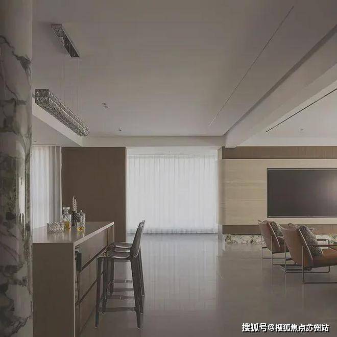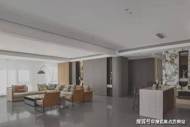 中岛设计既独立又能和其他空间联动起来,变成一个更大的休闲区、社交场,可开可合、可静可动,让空间有了更多的可能性。
