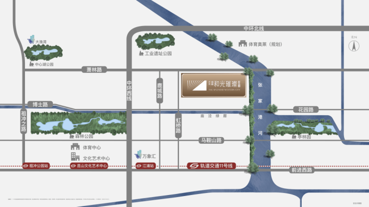 随着鑫欣科创综合体、工业遗址公园、城北中心小学西校区、张家港沿线滨水绿廊等昆山高新区重点项目的打造,由中环、张家港河及庙泾河围合而成的花园路片区将成为昆山高新区功能完善的生活片区代表。花园路板块正加速升级,值得一提的是,片区新增的4宗住宅中首要开发的项目“和光璀璨”,是wei一滨河的稀缺项目。