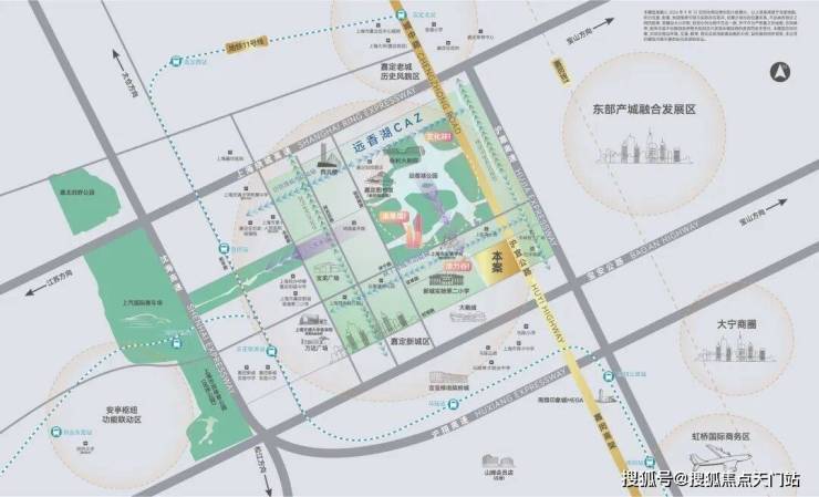 一条沪宜公路,贯连嘉定南北,通过这条大动脉往南能迅速接驳沪嘉高速、嘉闵高架,通达大宁、虹桥、真如等城市CBD。往北则链接远香湖CAZ,聚集嘉定新城的城市资源精粹。