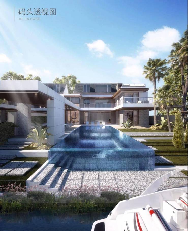 项目从此前曝光的设计方案就可以看出亮点,每一排别墅前都有一条渠道,引入水系,可以停游艇。