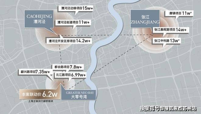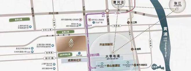 项目与5号线剑川路站的直线距离仅有1km左右,通过5号线可以直达莘庄城市副中心,并换乘1号线到达徐家汇、人民广场等核心CBD