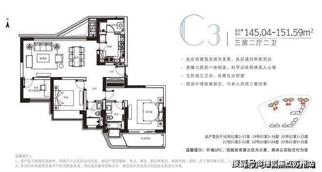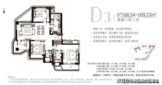 建面约155-236㎡仅是做了3房、4房,大平层尺度感和空间感让居住舒适度无限拔高,将生活的奢度打开。