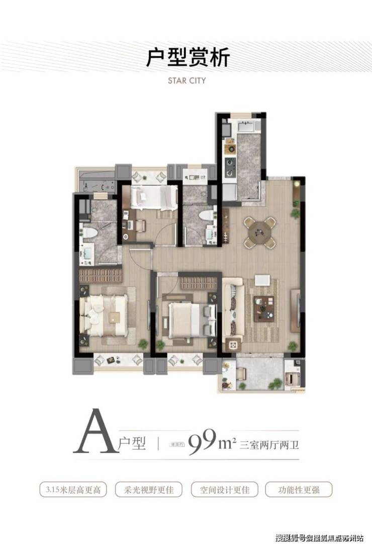 · 约89㎡户型:大虹桥范围不到90㎡的户型大部分都只做到2房,灿耀星城该面积段实现3房功能性,让自住客户一步到位,也让该产品进入二手市场后具备降维打击的优势!