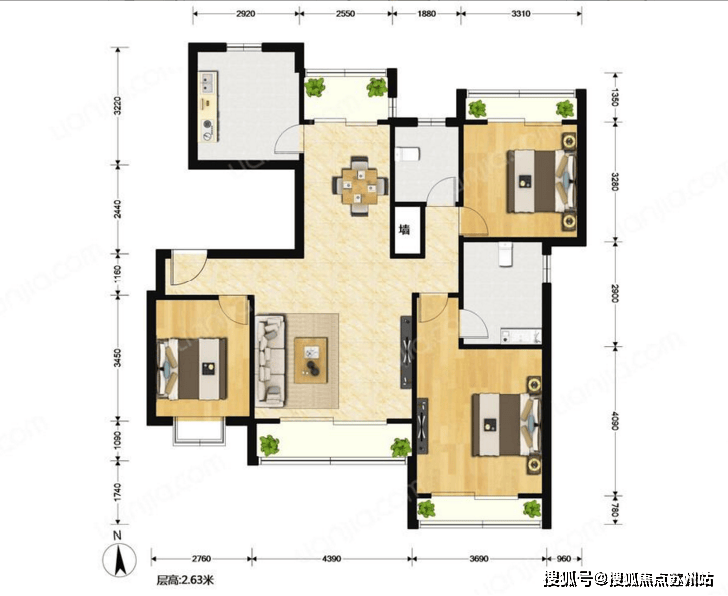 3、选户型,挑选户型时,首先要看户型的朝向。朝向优劣的顺序依次为:正南、东南、东、西南、北、西。
