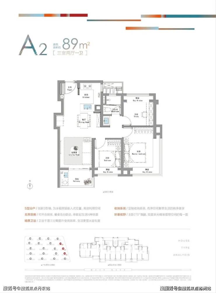 建面约89㎡3房东边套主卧配置约270°双向采光飘窗、S墙设计,主力总价仅约450万级!