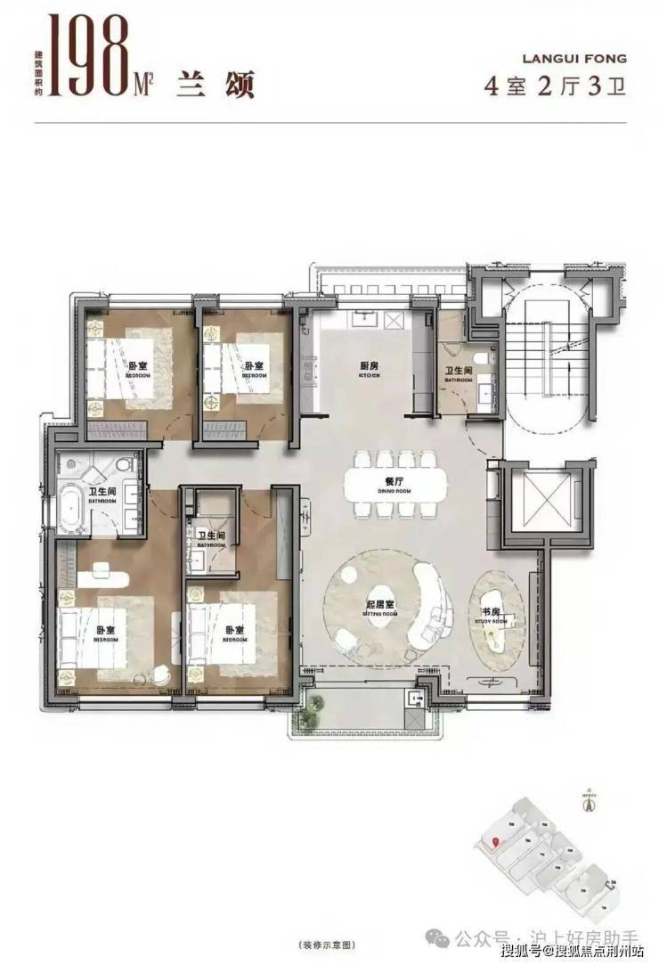 2)洋房大平层精装198平4+1房三卫