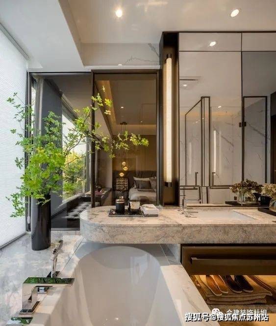 2、主卧套房设计了豪华主卫,有独立的淋浴间、马桶间、浴缸以及双盆洗漱台,淋浴间开小窗,跟衣帽间更通透,主卫移门也不占地 ,动线更方便 ,双盆龙头早晚洗漱更加方便;