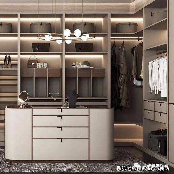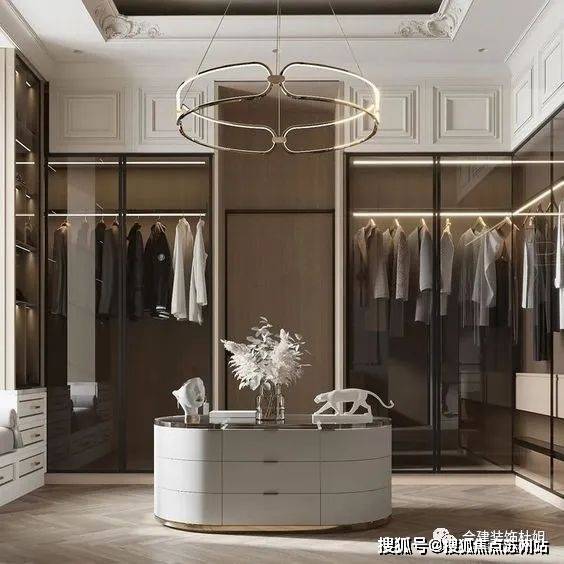 做个类似这种衣帽间➕岛台是不是颜值加倍🥰平时准备外出工作时,变得都更有动力了呢~