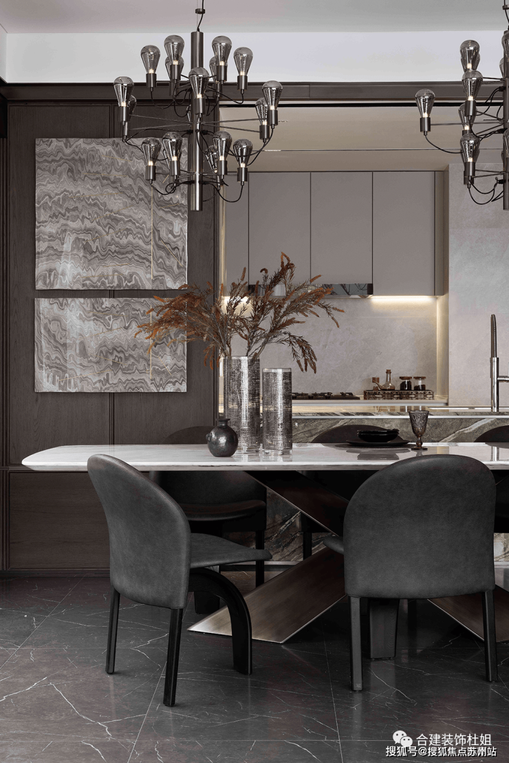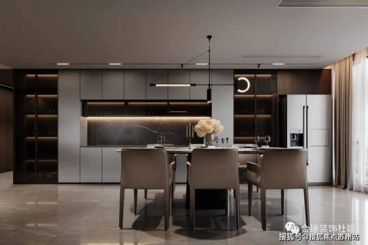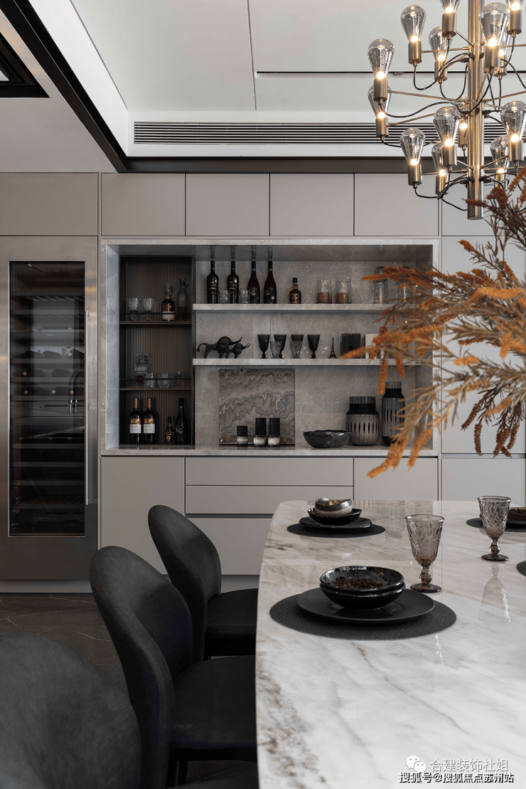 5、合理控制餐厅的收纳空间以及客餐厅比例感,空间比例不能失衡,避免头重脚轻。