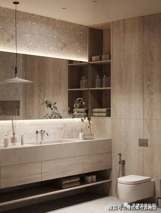 4、增大了原有客卫空间,做了干湿分区,开门也不正对马桶,浴室柜尺寸也比较匹配182平方这个户型面积了。在次卧一侧的墙体上,在1600㎜以上的高度左右,考虑开一个横窗,保证私密性的同时,也可以补充卫生间光线。