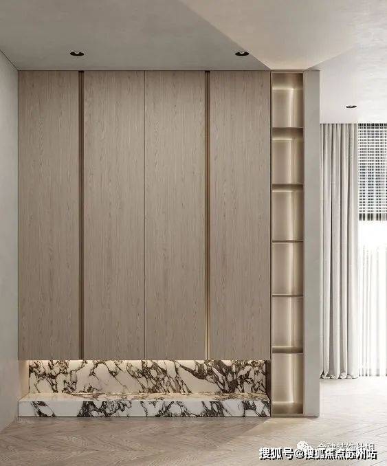 第三个方案,考虑鞋柜跟玄关背景结合。