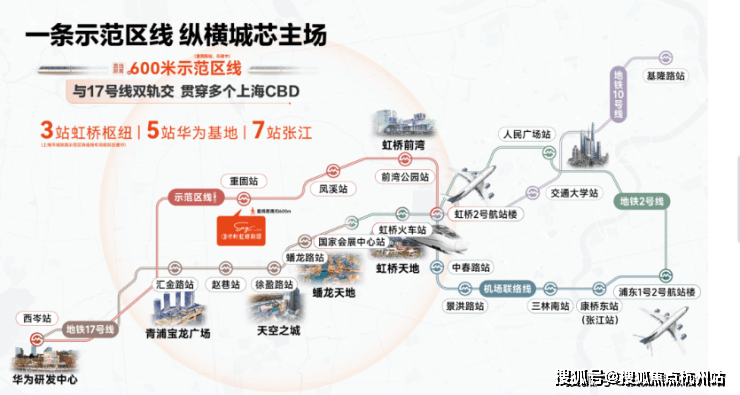 依托示范区线,2站可达拥有新虹桥国际医学中心的前湾,汇聚复旦大学附属华山医院等十余所知名医疗机构;向西2站至青浦新城,亦有复旦大学附属妇产科医院等重磅医疗资源在建或规划中。