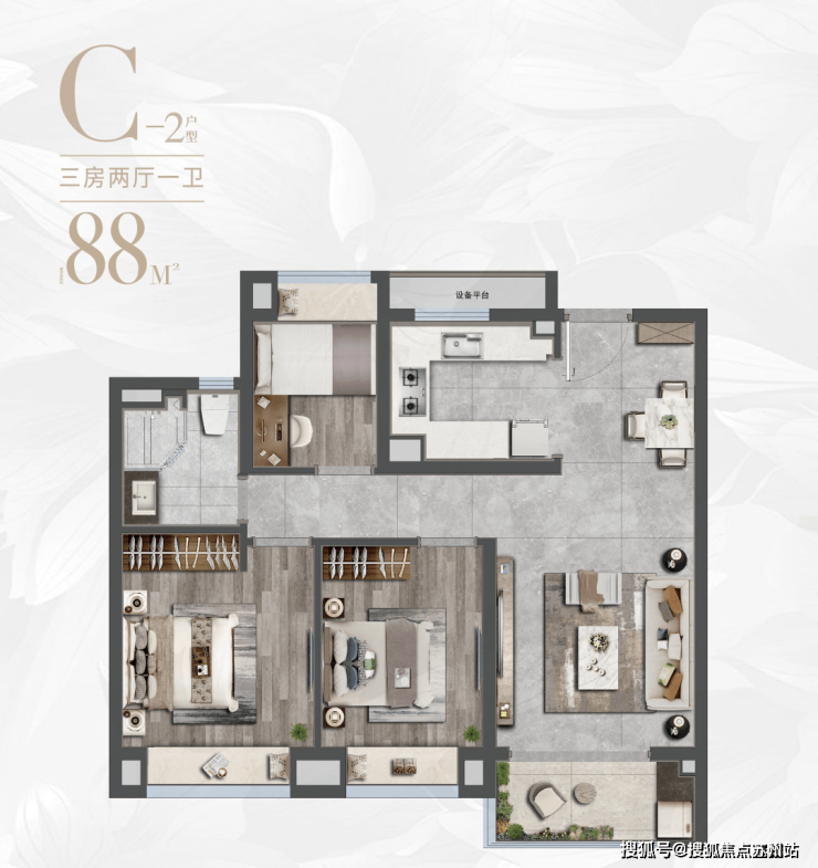 安联·虹悦总建筑面积约12.5万方,总规划8栋14F和3栋16F小高层,涵盖建筑面积型分别为88/95㎡的三房两厅一卫、99㎡的三房两厅两卫和133㎡的四房两厅两卫“全龄全时成长型”户型。