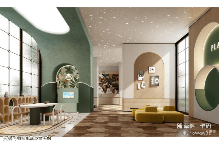 全龄架空层(约 3000㎡):儿童游乐、老年休闲、会客等。