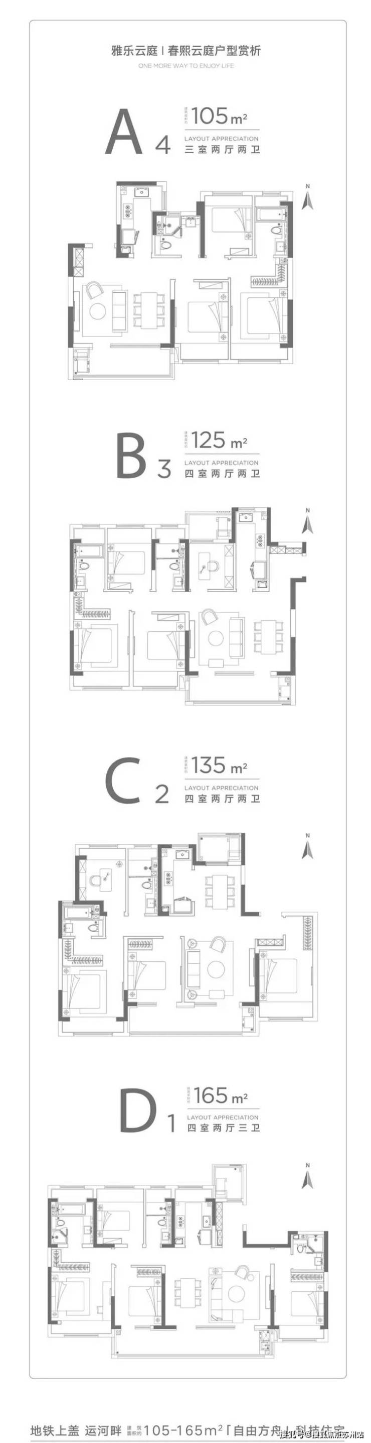 户型:建面约105㎡、125㎡、135㎡、165㎡