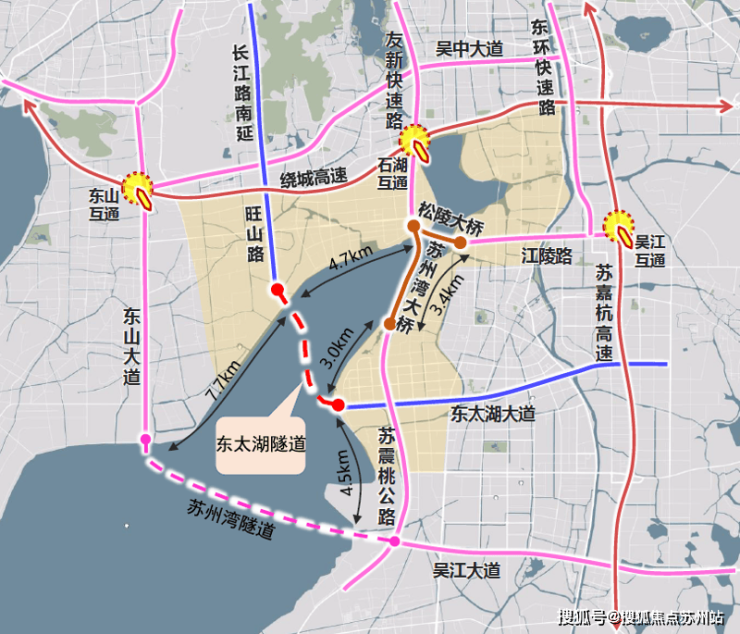 由交建公司集中建设的是苏州湾隧道,苏州湾隧道是635国道拟改线段的重要涉东太湖节点,也是苏州市“大中环”的重要组成部分,项目的建设可完善区域综合交通网络、疏通跨东太湖交通堵点,推动“环太湖科创圈”“吴淞江科创…