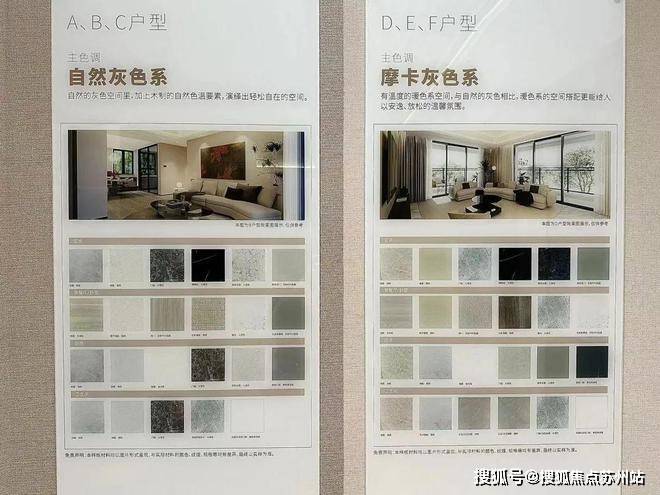 基于对市场流行色的分析,再加上室内的精装风格。 和风雅信的户型色系,从自然灰色向渐深的摩卡灰过渡。小户型采用浅色系,增加通透效果,大户型则采用深色系,增加室内质感。