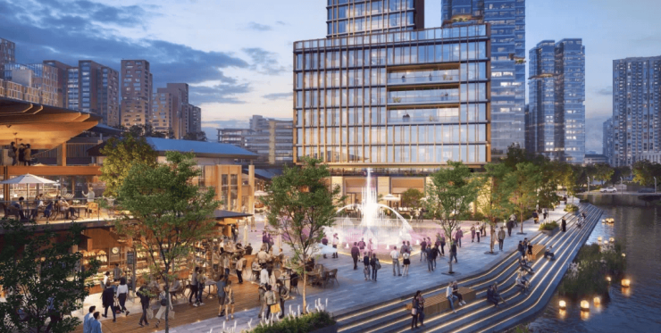 规划以“悦”、“赏”、“游”、“聚”四大主题为脉络,相应打造了仓廪市集,中央丘谷,河畔公园和桥水门户四大场所,并通过贯串全域的社区漫步景观带,将这些高品质公共空间有机串联起来,打造成为城绿共生、全龄友好、活力精致的大型高品质社区。