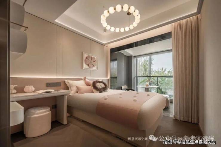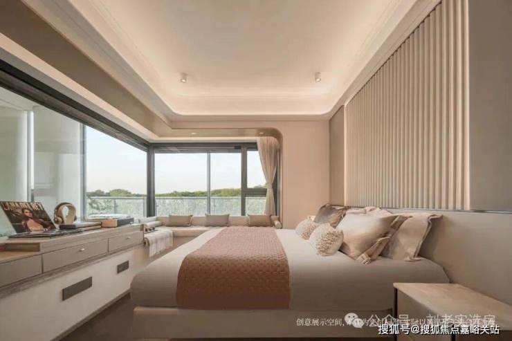 如果是边套的主卧,还会有一个约270°的转角飘窗,尺度感和实用性更上一层楼。