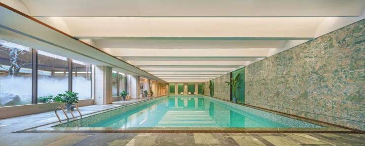 会所作为社区的灵魂所在,山水颐萃别院打造了银湖板块独一无二的双泳池体系.一座是约260㎡的室内恒温泳池,无论寒冬酷暑,水温始终维持在适宜区间,让游泳成为一种不受季节打扰的日常坚持,配套的独立淋浴区与消毒池确保了环境的洁净与尊属感.