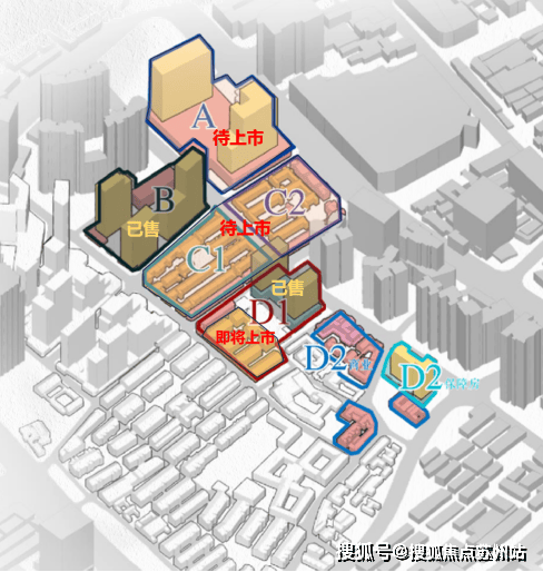 项目整体分为6个地块,即A、B、C1、C2、D1和D2。
