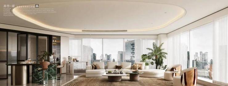 将艺术感进一步融入日常中。特别设计的专属门厅空间,是从电梯厅延伸到家,如同一处艺廊,放慢人的情绪;室内选用了浅金色奢石(外界也称其为“芬迪白大理石”)作为主要的石材,曲面的木饰面也为浅色,整体给人以明亮感。