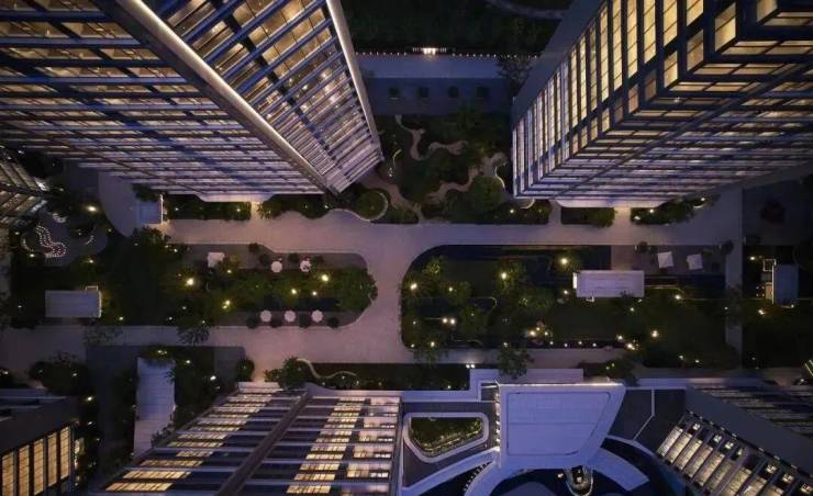 在规划设计上参考新加坡、曼谷等国际城市在度假酒店、商业综合体领域的成熟经验,以“城市度假地”为设计线索,整体性地分为东区、西区和中区。其中,中区是约7.3万方的高品质商业mall,并引入了“公园生活”理念,以立体绿化、步行坡道、内外无界的手法,有意识地增强其公共和生态属性。