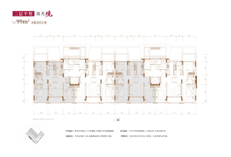 从内部空间体系来看,地上三层,层高分别是3.6米、3.3米和3.3米;每个单元一梯两户,每户均拥有类独立电梯厅;一楼带地下室及庭院,并通过创新退台式设计为二楼和三楼打造私家空中花园,形成户户有花园的墅居生活方式.