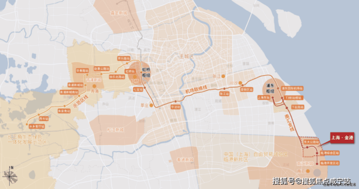 这是一个“产、城、人、景”融合发展的“TOD大城”。依托两港快线综合区站的交通优势,及商业中心辐射能力,有机融合科创产业园区,完善布局学校、商业与社区服务功能构建优质15分钟生活圈,形成一个宜居宜业、充满活力的魅力新城。两港快线预计2026年通车,届时从综合区站3站到浦东枢纽,机场联络线3站到张江,轨交出行快人一步。