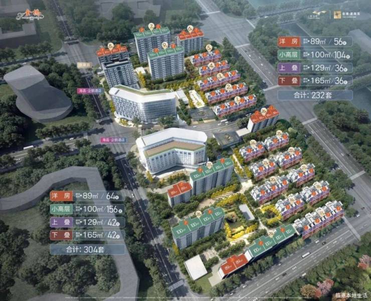 产品类型:包含89㎡3房洋房、100㎡小高层及129㎡上叠、165㎡下叠叠加别墅,容积率低至1.7,以真叠墅结构为主打。