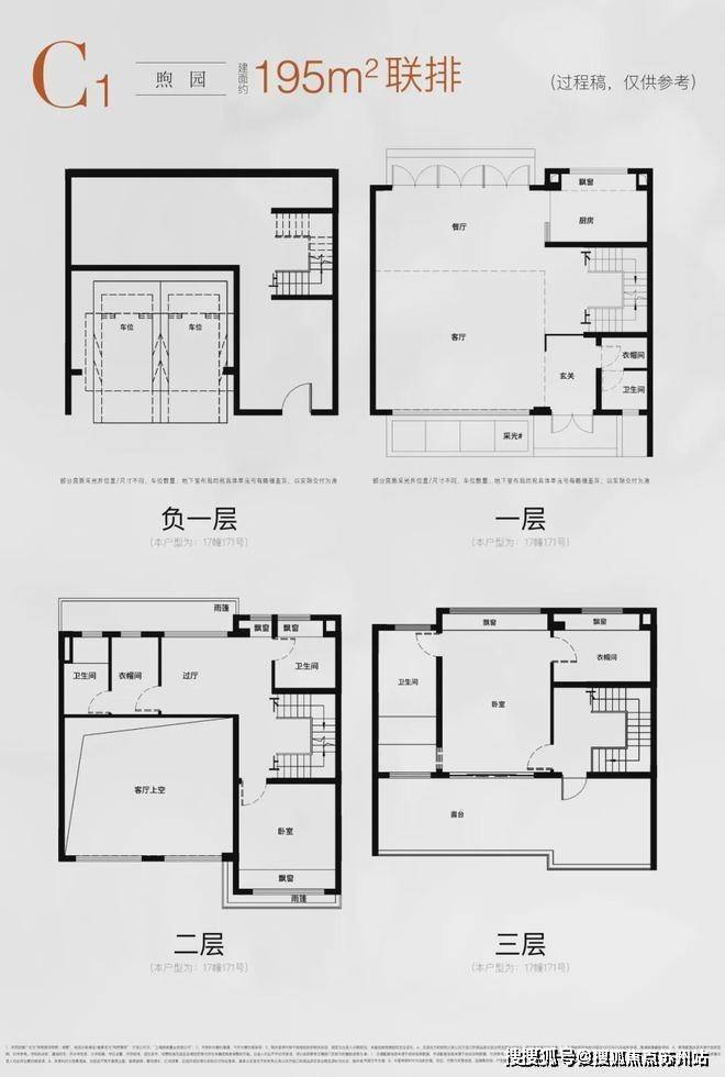 建面约195㎡的C1户型,尺度更加惊人,墅居体验堪称“庄园式”!