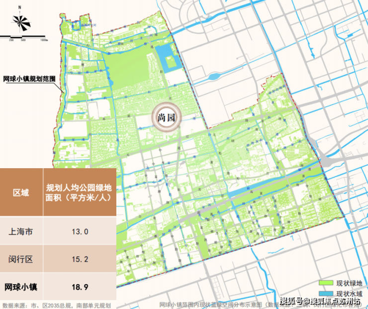 网球小镇规划分为内滨水廊道和生态绿地星罗棋布,区域规划人均公园绿地面积超出全市平均水平近 50%