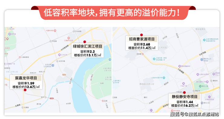 静投静安寺项目,容积率1.44,可售住宅楼板价约16.2万/㎡,楼板价远超曹家渡的招商项目