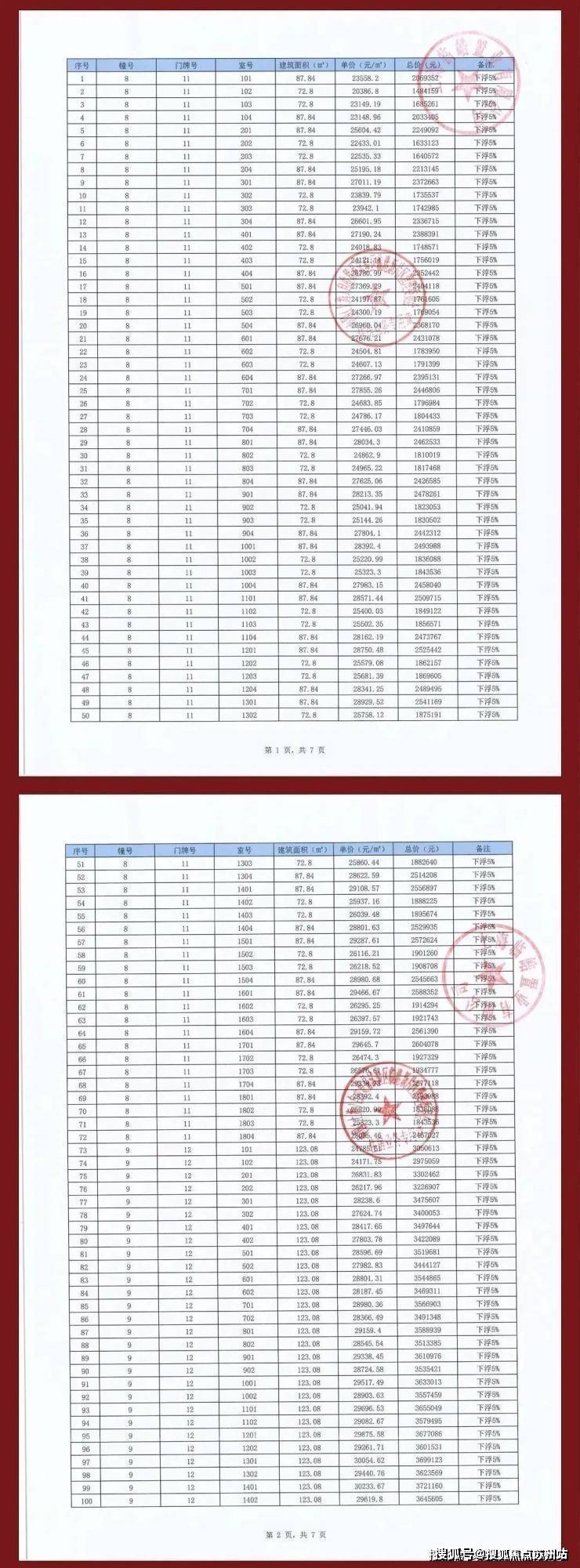 48、均价:即物业的平均销售价格,将本物业各套房子的销售价格相加之后的和除以各单位建筑面积的和数,即可得出每平方米的均价)。