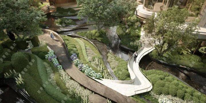 项目打造了层次丰富的立体景观,通过抬板、立体庭院、下沉式绿化与建筑第五立面的融合,项目营造出了一个充满生机与活力的自然生态社区。