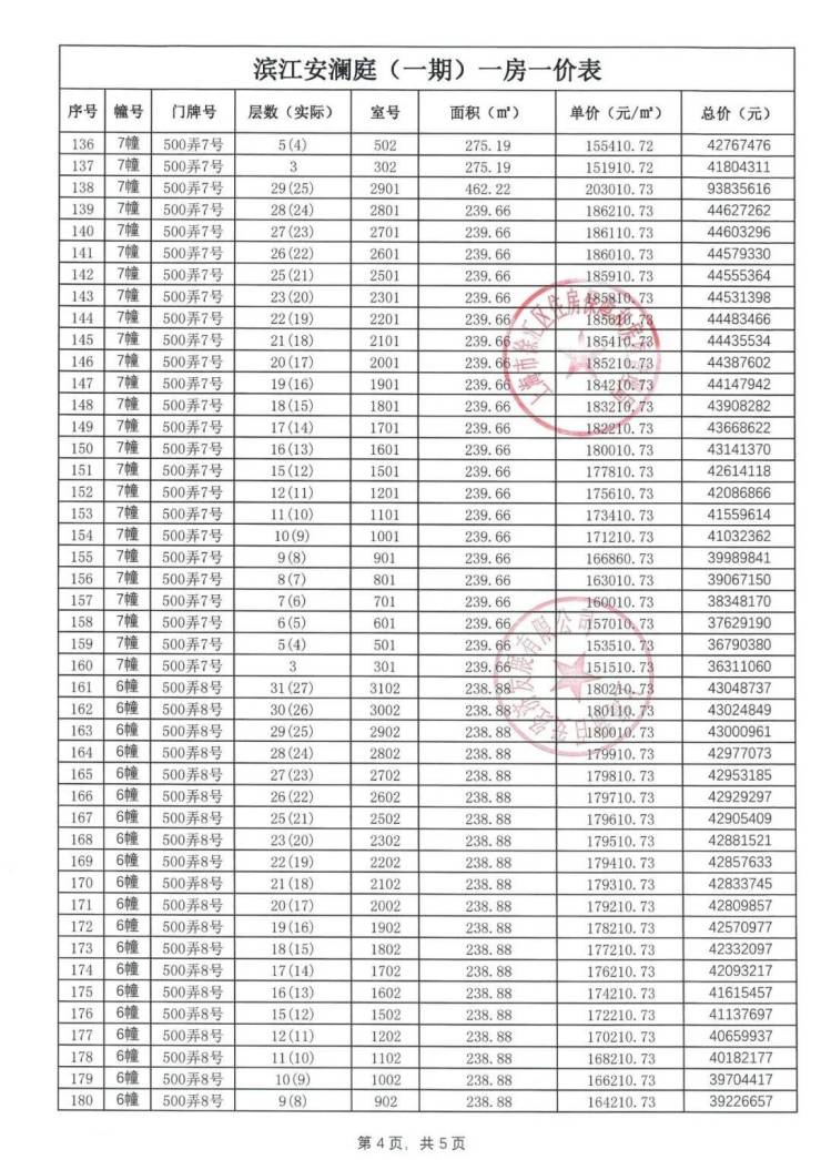 【安澜上海】一房一价表: