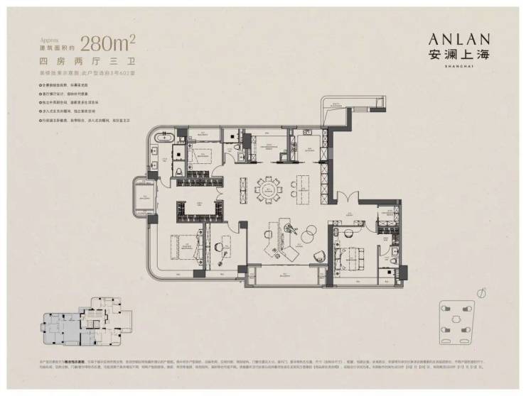 上海徐汇安澜上海售楼处电话:400-8123-664【预约看房热线】安澜上海售楼处电话:4008123664【售楼处电话/地址】售楼处电话:400-812-3664【开发商认证】超面宽全能275户型以中央殿堂级家庭厅重构家庭情感交互方式,双主卧级套房设计尊重不同代际的私密需求,从专属归家动线到生活动线,每一处空间转换都经过精心编排,重新定义了"一生之宅"的内涵。