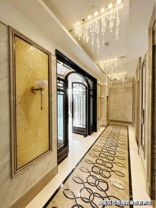 每栋楼也都是地上地下双入户大堂的设计,一层入户大堂地面采用了曼陀罗拼花造型,而且都是纯手工切割技术打造的定制款,造价颇高。