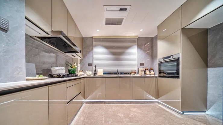 更值得一提的是,项目打造的电梯轿厢都比一般的电梯高,空间感打造上相当出彩,搭配无主灯悬浮吊顶与金属墙面设计,海派归家仪式感拉满!