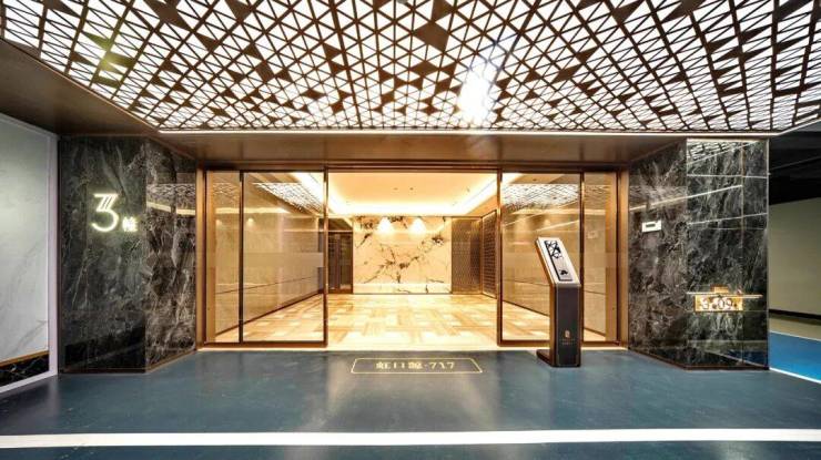 除此之外,项目还有地下车库空间实景呈现,未来业主地库入户大堂、电梯厅等都高质量打造呈现,品质感十足!星空顶设计感相当惊艳,地下入户大堂及电梯厅的木纹拼花地板足见其设计团队的超高审美!