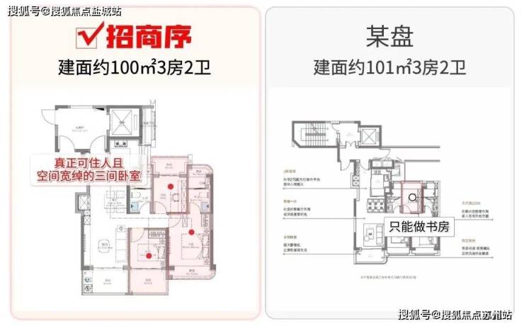 这是百平米3房那么多年一直无法解决的通病,但招商序的百平米3房却截然不同,TA凭借着3阳台的设计,给到客户一个真正的三房户型: