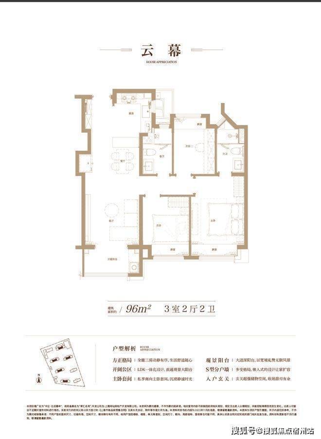 约96㎡的3房2厅2卫户型,中企云启春申售楼处电话☎:400-8123-664空间布局合理,每一寸空间都得到极致利用,毫无浪费.三个房间大小适中,满足家庭成员的居住需求.客厅宽敞明亮,与阳台相连,让阳光与清风肆意穿梭,为生活增添惬意与舒适.中企云启春申售楼处电话☎:400-8123-664