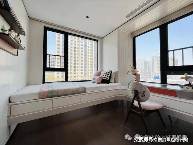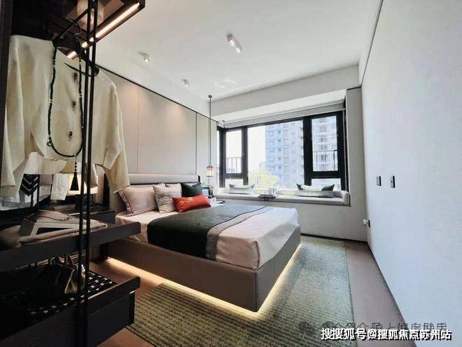 两间卧室朝南,均带有飘窗,主卧自带独立卫浴,小户型也可以拥有酒店套房般的体验。北向房间设计双飘窗,这也就意味着拥有双向景观,给了生活更多一种的可能。