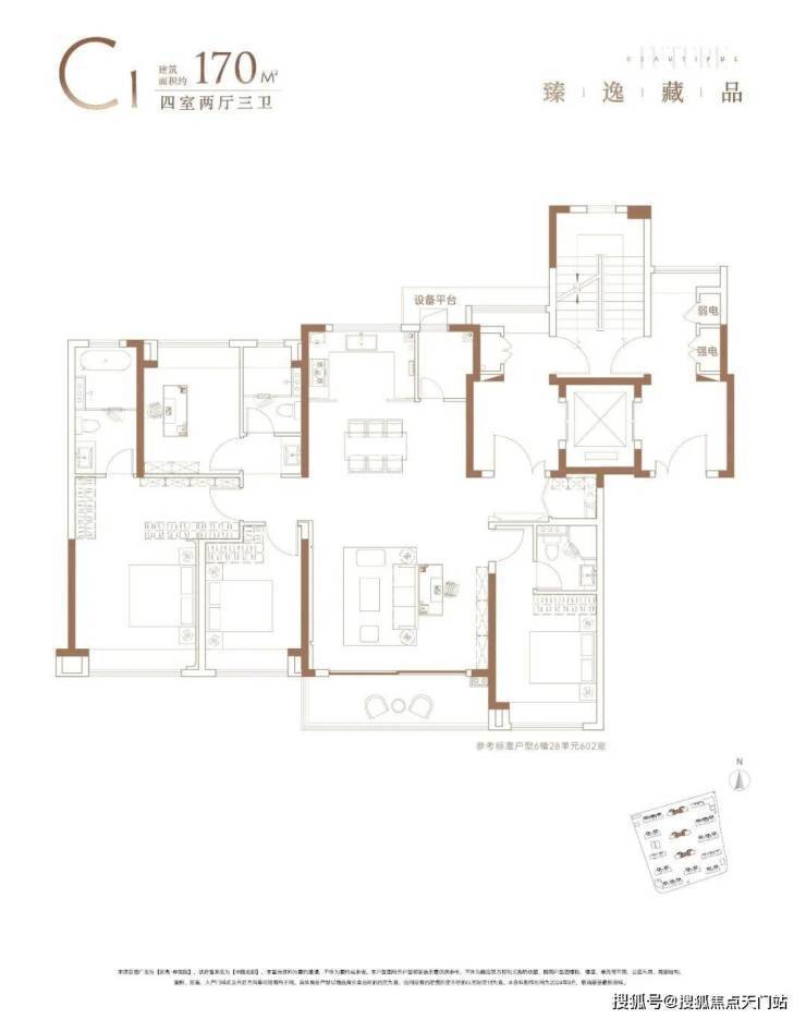 3)建面约170㎡四房两厅三卫——尺度感的王者