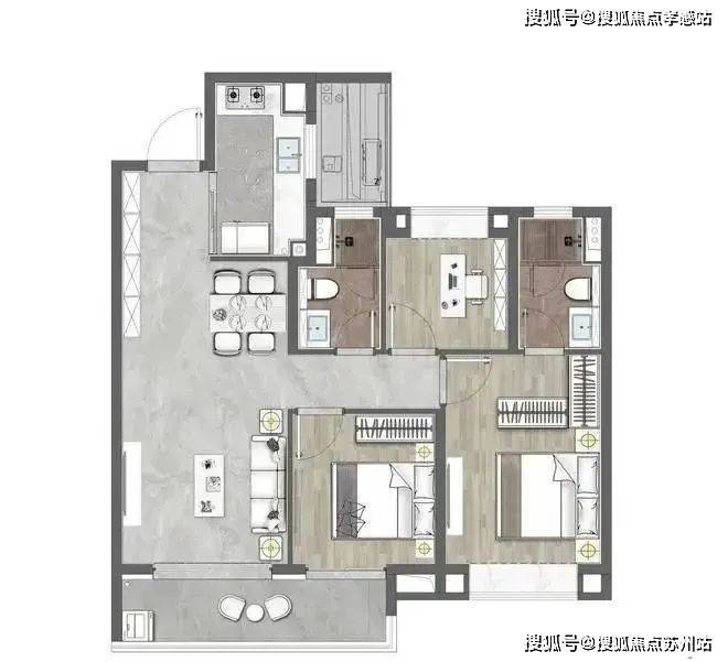 「城投悦江湾」售楼处电话:400-8123-664该户型做到了三开间朝南+超大面宽横厅+主卧套房设计+卫生间干湿分离+南北通透,功能性和尺度感完美结合。